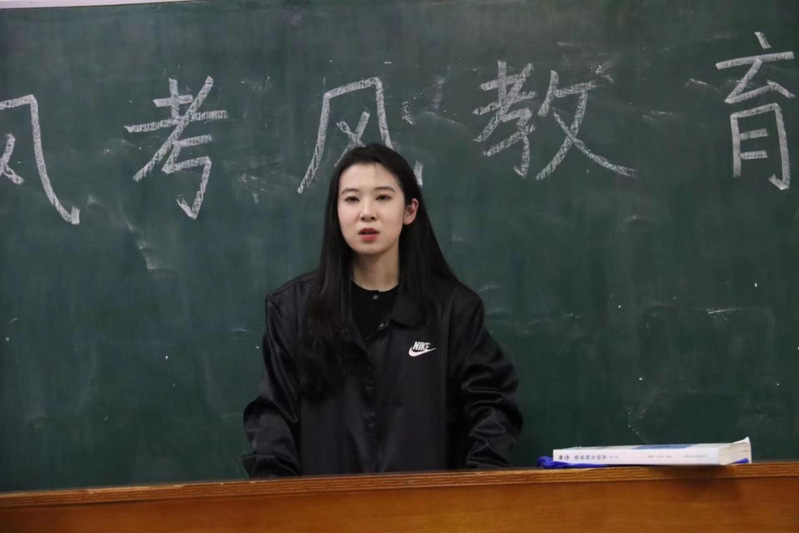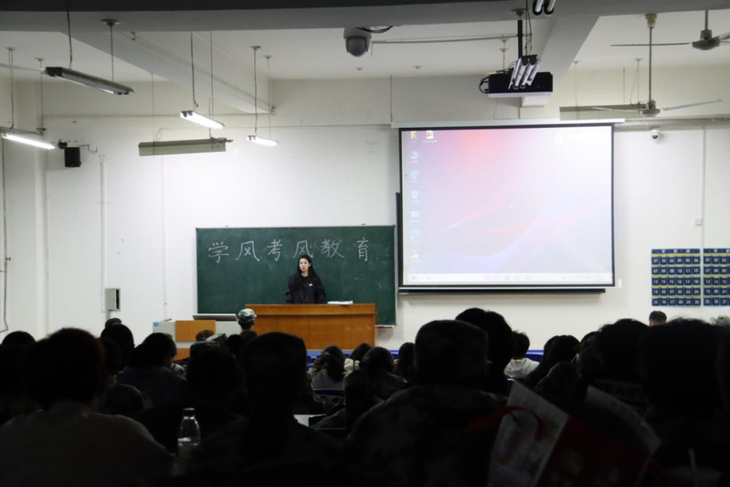 讲座时,吴思老师从四大方面展开:期末挂科情况、考试作弊原因及问题分析、目前学习情况、未来学习方向。吴思老师一个一个指出问题并说明,最后又提醒同学们应该怎么做。