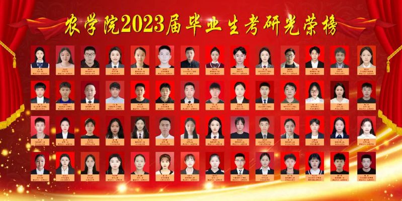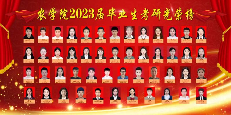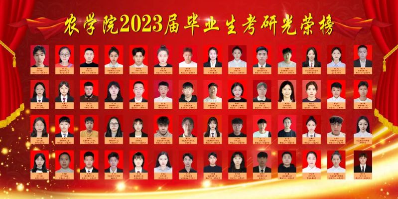 3044am永利集团欢迎您2023届本科毕业生377人,考取硕士研究生163人,其中推免27人;升学3人以上的寝室27个,其中共有10个寝室全员顺利“上岸”。充分展现了农学学子互帮互助,携手同行,共同进步的良好学习风尚。下面,让我们通过考研光荣榜,一睹他们的风采!