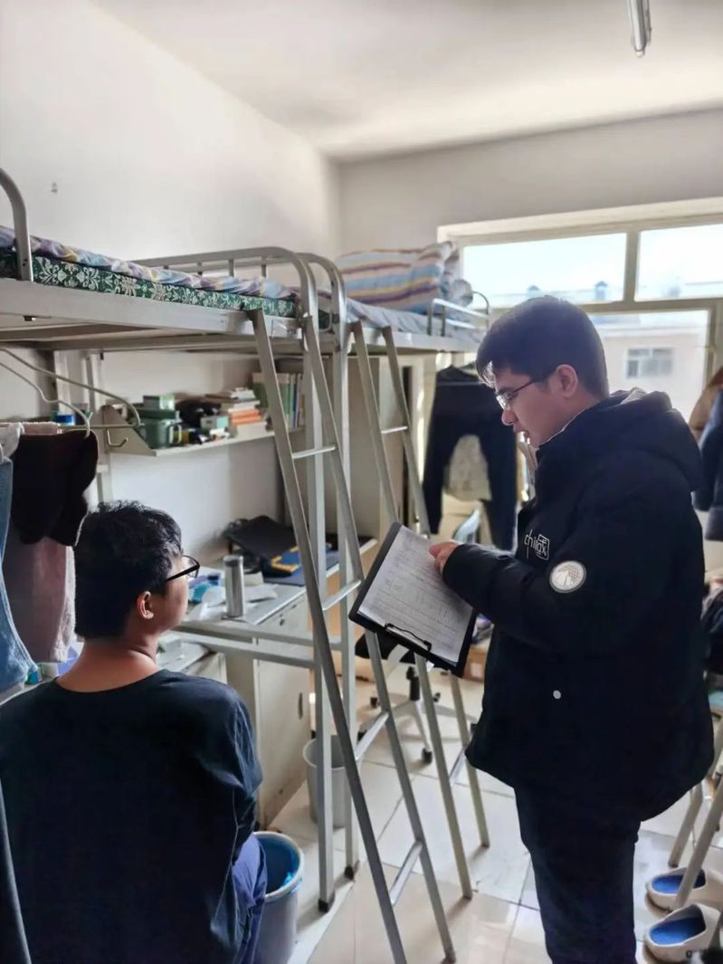 查寝过程中,辅导员对所在年级同学宿舍进行卫生检查,并在查寝过程中对同学们近期的生活和学习状况进行了解,对同学们进行积极鼓励,叮嘱同学们在日常生活中保持良好的卫生习惯。