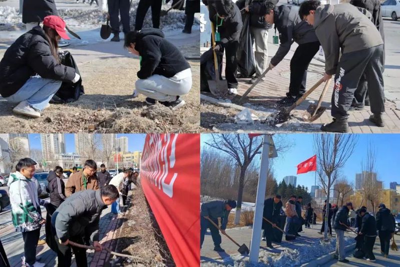 在公共分担区清扫过程中,同学们凝聚合力,认真进行垃圾清理,形成“全民参与,齐抓共管,常态长效,共建校园”的生动局面。