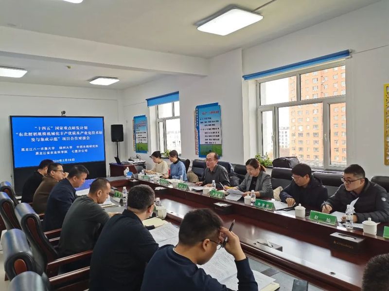 2024年 2月28日上午,黑龙江八一农垦大学、中国水稻研究所、扬州大学、黑龙江省农业科学院在北大荒集团七星农场有限公司召开由我院承担的国家重点研发计划项目课题1“三江平原粳稻温光高效与抗寒促早机械化丰产优质技术研发与示范” 项目合作对接会暨实施方案论证会,课题1各任务负责人及七星农场有限公司相关人员参会。