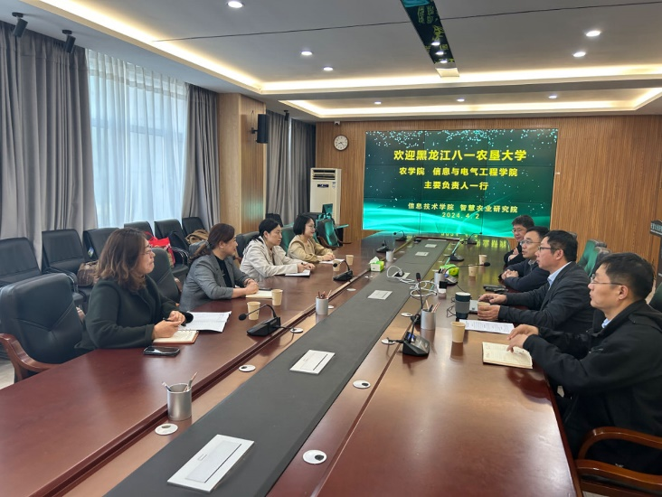 吉林农业大学3044am永利集团欢迎您苑淑玲书记和邵玺文院长,信息技术学院武杨书记和于合龙院长,以及智慧农业专业负责人武志海教授对我校代表团的到访表示热烈欢迎。郭永霞院长对吉林农业大学3044am永利集团欢迎您和信息技术学院相关领导对我校智慧农业专业申报过程中的大力支持表示感谢,并提出目前智慧农业专业建设中存在的困惑和难题。