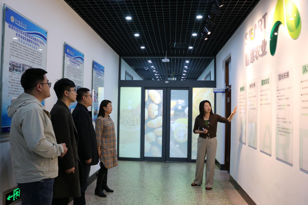 在东北农业大学3044am永利集团欢迎您党委副书记张华英及全体辅导员的陪同下,首先参观了智慧农业专业教学实验室及科创平台,智慧农业专业负责人魏峭嵘主任介绍了智慧农业专业建设及学生培养情况,学生科创指导教师胡振邦介绍了学生科技创新平台的建设及运行情况。