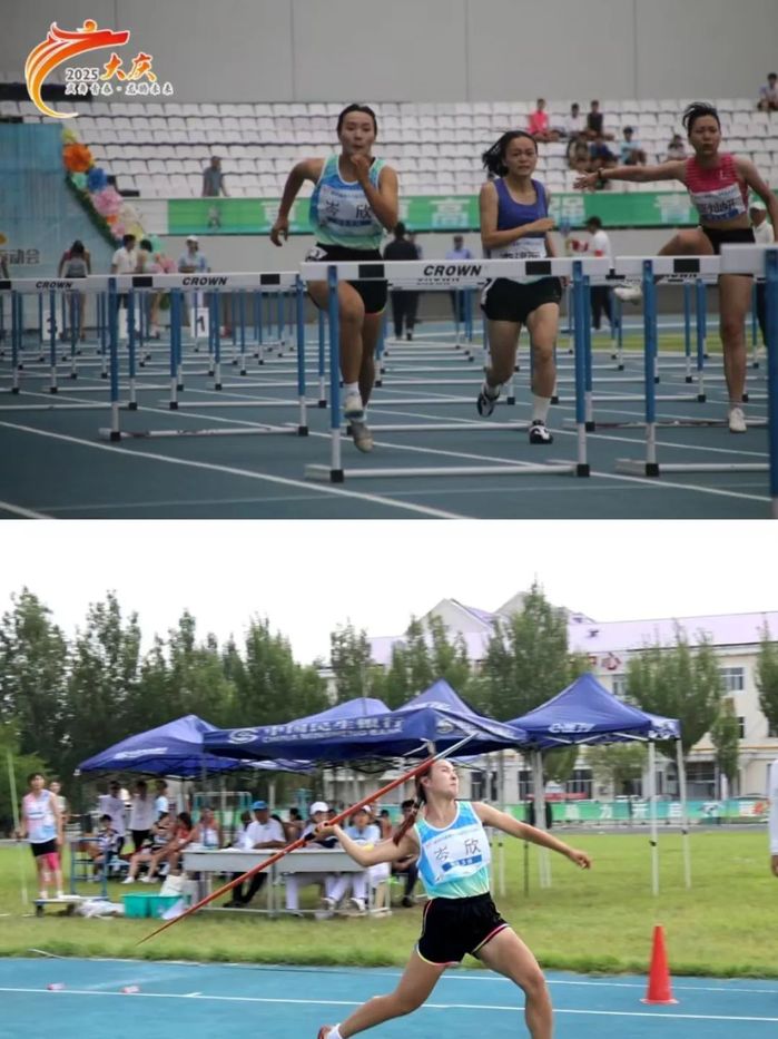 跨栏赛场张雯同学的锋芒点燃。100米跨栏起步,她反应神速如闪电,过栏时身体前倾、节奏精准,栏间步伐紧凑有力,率先冲线夺得冠军;400米跨栏中,她全程保持高强度节奏,跨越最后一栏后全力冲刺再次锁定冠军。赛道上的她,每一次跨越都带着“舍我其谁”的霸气,栏间穿梭的身影如灵动猎豹,锋芒毕露无人能挡