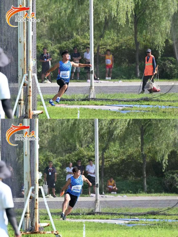 铁饼项目的比拼充满力量感,成林加村同学一出场便展现绝对优势,旋转加速时肌肉紧绷,出手瞬间爆发力十足,稳稳锁定冠军;刘继烨同学同样不甘示弱,投掷动作流畅有力,拿下亚军,两人在赛场上的每一次试投都带着势不可挡的锋芒,让铁饼赛场成为力量与技巧的华丽舞台。
