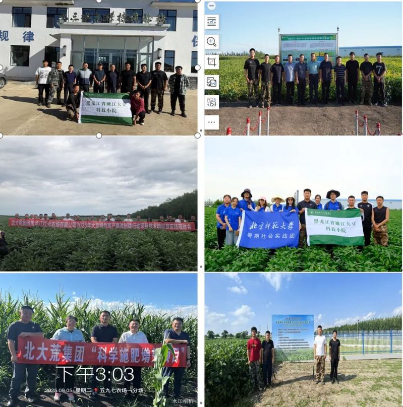 8月,黑龙江八一农垦大学大豆优质高效栽培技术创新团队教师深入北大荒集团各个农场开展大豆夏管指导工作。大豆高产栽培技术创新团队教师近期持续深入北大荒集团各农场,指导大豆高产示范田的田间管理工作。其间,团队负责人张玉先教授在完成一线生产技术指导后,又应邀赴友谊农场,参加中央农业广播电视学校“一喷多促”技术推广节目的现场连线;随后赶赴黑龙江省农业技术推广中心及北安地区开展大豆高产培训,为农技人员和种植户传授关键技术。此外,张教授陪同副校长孙东波、科技处处长左锋赴嫩江市出席大豆种业联盟成立大会,共同推动大豆种业创新发展。与此同时,嫩江大豆科技小院师生也接待了北京师范大学暑期社会实践团,双方就大豆科技与农业实践开展了深入交流。