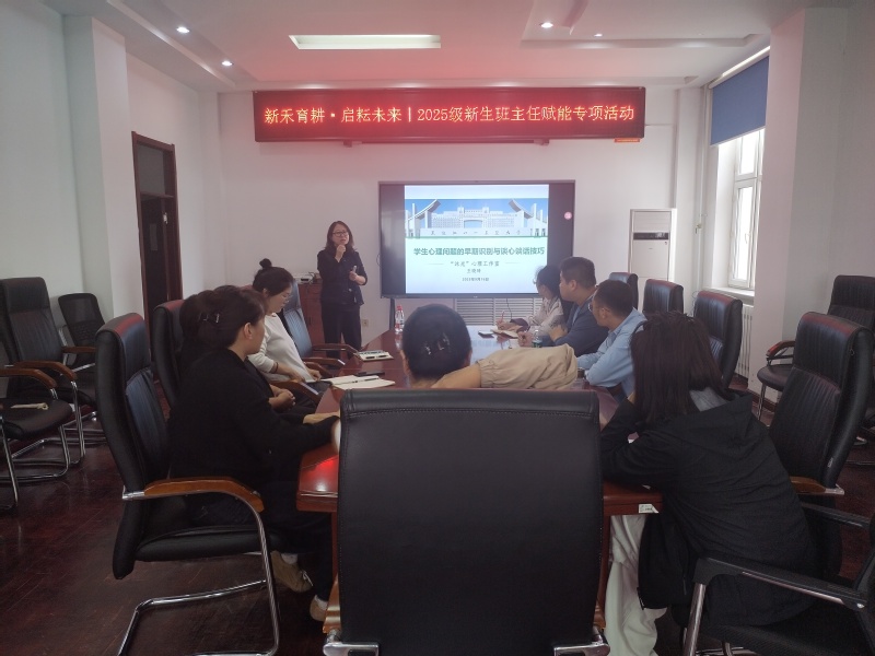 为全面提升新生班主任队伍的专业素养和管理能力,助力2025级新生班主任高效开展工作、强化风险应对能力,9月17日下午,学院在3001会议室开展《学生心理问题的早期识别与谈心谈话技巧》专题培训和《阶段式启智润心,全过程育人育才》班主任经验分享,本次培训由“沐光”心理工作室负责人王晓琦老师主讲和学院从事多年班主任工作经验丰富的苗兴芬老师分享,学院党委副书记白巍主持。