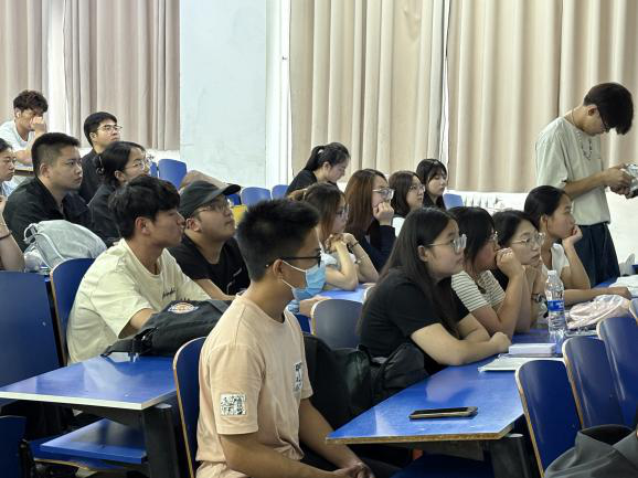 林秋雨于2025年6月在我校农学专业本科毕业后,继续在我校攻读硕士研究生。班会开始,林秋雨结合自身考研经历,从院校选择、考研科目、复习计划、心态调整等多个方面详细介绍了考研备考策略,介绍的考研备考过程中的关键时间点被同学们详细记录。