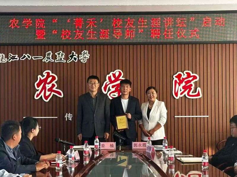 启动仪式上,姜楠书记阐释“菁禾”培育工程概况。“菁禾”培育工程立足“服务学生成长成才”使命,依托八一农大“扎根黑土、强农报国”办学传统,构建“禾苗生长隐喻 + 全周期梯次进阶”双螺旋育人模型,以禾苗生长节点对应本硕博全培养阶段,凝练“启、赋、壮、盈、砺、强”六大育人维度,打造“生长型”育人新局。“校友生涯讲坛”是学院深化“菁禾”培育工程、构建农科育人双螺旋体系的核心举措,通过邀请基层农技先锋、科研攻坚者及智慧农业拓荒人担任“行走的教科书”,用校友从黑土地到行业前沿的跨界实践,为学生具象化“实验室-田野-产业”的全景图景,培育“懂基因编辑、通市场运营、会田间推广”的复合型人才。
