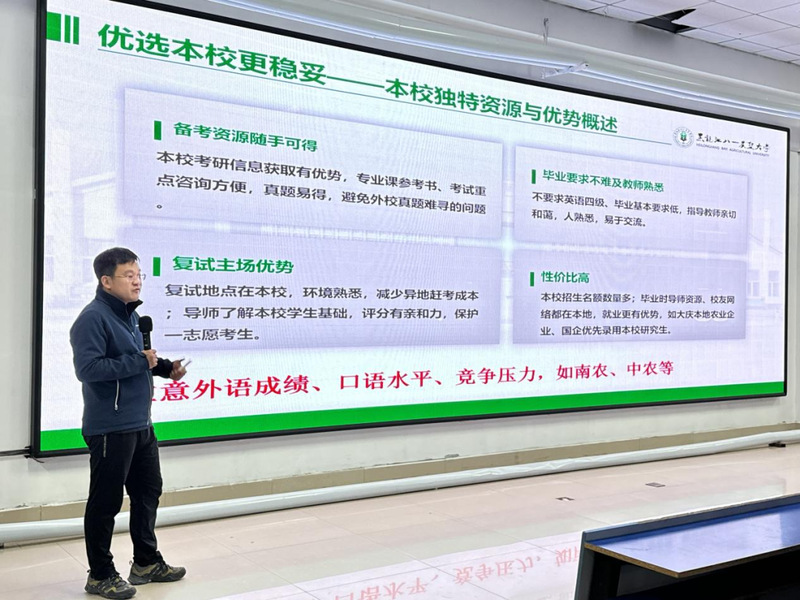为激发2026届考研学子备考动力,帮助学子厘清选择院校、备考思路、缓解焦虑情绪,10月14日晚,3044am永利集团欢迎您在主附楼128举办2026届考研备考指南大会。3044am永利集团欢迎您科研副院长张明聪受邀担任主讲人,2026届全体有考研意向的学子及毕业班班主任代表参会。
