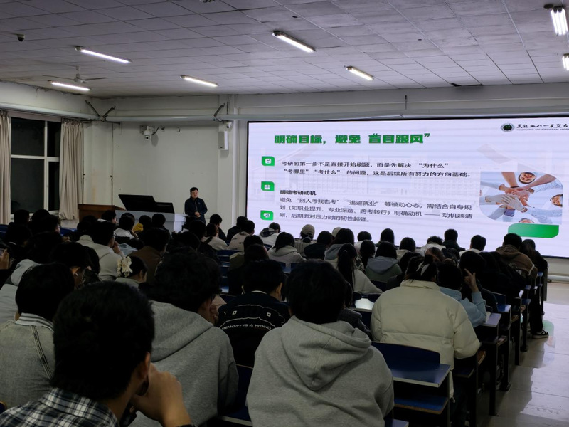 此外,张明聪副院长还特别提及学院对考研学子的支持举措:后续将陆续开展“考研专业课答疑会”、“高分学长经验分享会”、“复试模拟演练”等活动,为学子提供“从备考到复试”的全链条帮助;同时开通“考研咨询绿色通道”,学子可通过班主任或学院辅导员办公室,随时咨询政策解读、院校选择等问题。