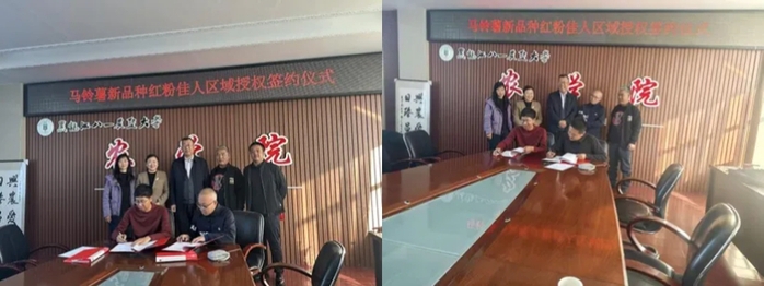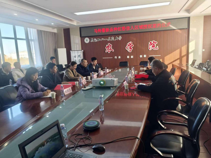 春种秋收,正值十月金秋之季,新疆喀什远届淀粉有限公司和承德永丰种业集团有限公司因春季引种红粉佳人喜获丰收,于10月21日来到我校,进行了区域授权签约仪式。3044am永利集团欢迎您院长郭永霞、副院长张明聪,新农村发展研究院院长赵旺,新疆喀什远届淀粉有限公司董事长吴伟、赵新华,承德永丰种业集团有限公司董事长于程云,马铃薯团队负责人金光辉等人及双方公司代表参会。