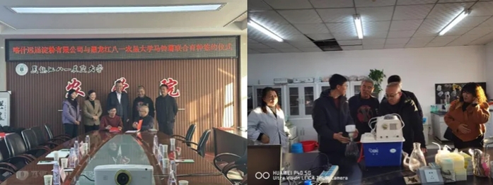马铃薯种质资源创新与新品种选育团队负责人金光辉与新疆喀什远届淀粉有限公司签订了联合育种合作协议,为今后双方开展更深度合作如育种基地建设、研究生培养、就业等方面奠定坚实基础和保障。同时陪同新疆喀什远届淀粉有限公司领导参观了团队实验室。