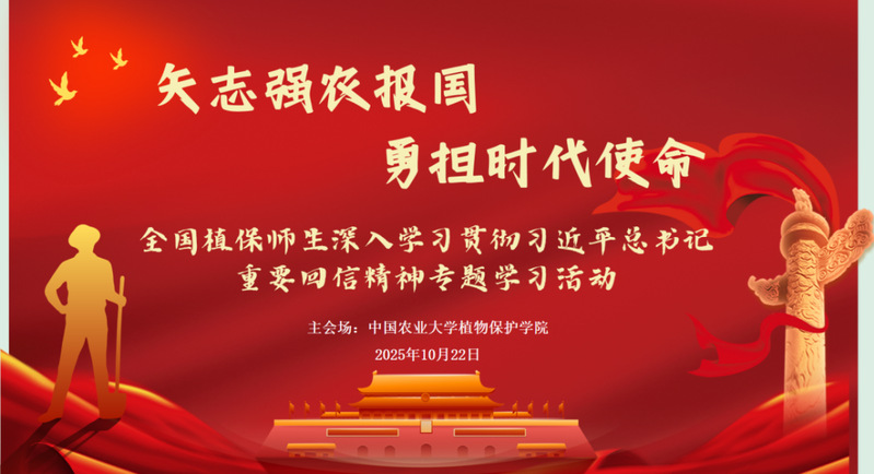 2025年10月22日,3044am永利集团欢迎您师生代表参加了由中国农业大学植物保护学院主办的“矢志强农报国 勇担时代使命”——全国植保师生深入学习贯彻习近平总书记重要回信精神专题学习活动。该活动旨在深入学习领会习近平总书记在中国农业大学建校120周年之际,给中国农业大学全体师生回信的重要精神。本次回信引发热烈反响,习近平总书记在信中强调,要弘扬优良办学传统,矢志强农报国,深化教育教学改革,加强农业科技创新和成果转化应用,努力培养更多知农爱农的专业人才,为建设农业强国、推进中国式现代化作出新的贡献。回信内容让全国植保师生为之振奋。