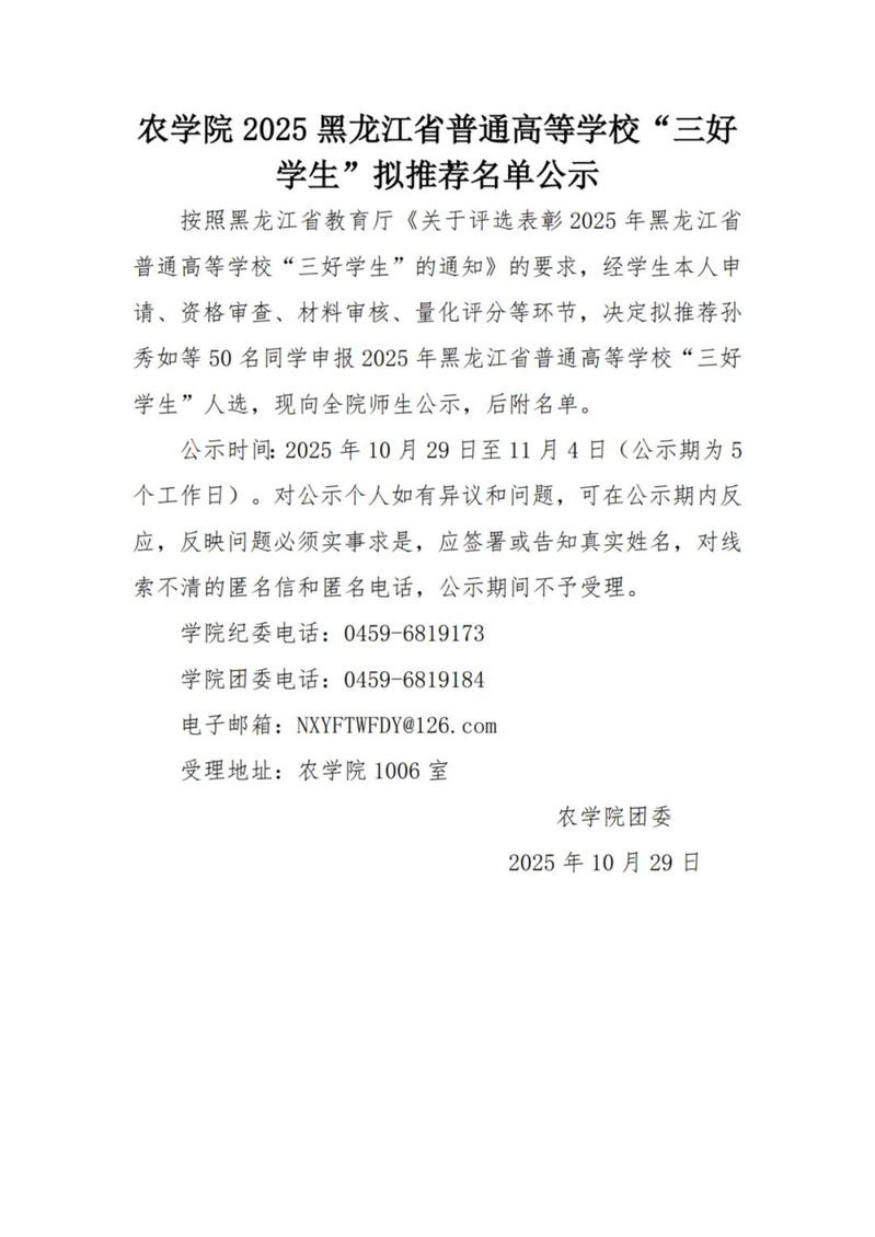 3044am永利集团欢迎您2025黑龙江省普通高等学校“三好学生”拟推荐名单公示