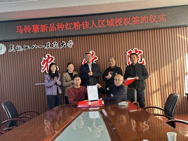 金秋十月,新疆喀什远届淀粉有限公司董事长吴伟一行于10月21日来到我校进行“红粉佳人”区域授权和联合开发育种签约。