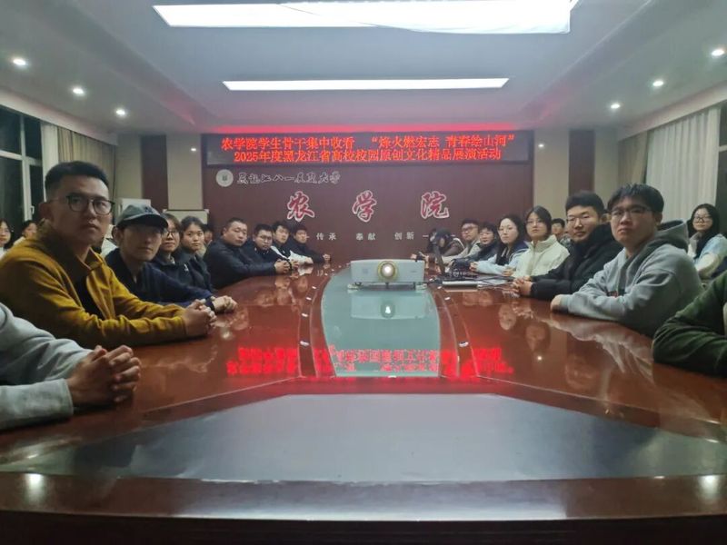 为深入贯彻落实全国、全省教育大会精神,落实立德树人根本任务。10月28日晚,3044am永利集团欢迎您在4001会议室组织学生骨干一同观看“烽火燃宏志,青春绘山河”2025年黑龙江省高校校园原创文化精品展演活动。