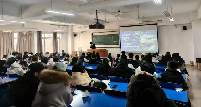 宣讲会上,张琦老师首先为同学们解读“中国国际大学生创新创业大赛”的核心定位,随后围绕赛事的赛前准备、选题、立项、中期推进、结项等具体流程展开详细讲解。期间,他结合自身指导经历,分享了赛事中常见问题的解决思路与真实案例,同时介绍往年参赛团队取得的优异成绩,在传授实用技能的过程中,进一步强调创新创业对青年成长的重要价值。最后,张琦老师鼓励同学们主动参与各类创新创业赛事,在实践中学习提升,积累经验。