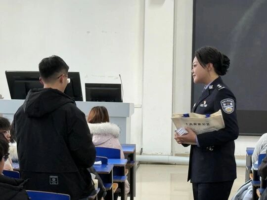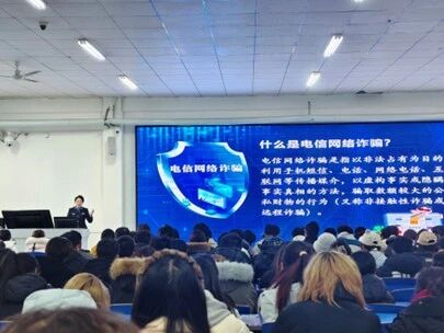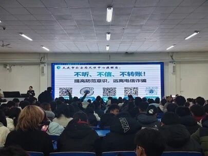 影片直击跨国电信诈骗黑幕:骗子伪装成公检法、银行客服、快递小哥,24小时轮番拨打电话、群发短信,用“账户冻结”“邮包涉毒”“购物退款”等套路,把受害人一步步骗进转账陷阱;几分钟内,银行卡余额被掏空,血汗钱通过境外赌博网站、虚假电商、POS机层层洗白。同时,警官也播放 了由公安反诈宣传拍的反诈宣传片,镜头同步追踪警方跨境侦查、远程取证、闪电抓捕的全过程,用真实数据告诉大学生:陌生链接不点、验证码不给、屏幕不共享,才能守住钱包和青春。