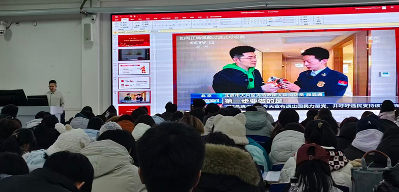 讲座中,陈老师结合生动案例,详细讲解了消防安全基础知识,提醒同学们重视用电安全,离开宿舍或实验室时务必切断电源,并结合近期发生的典型火灾案例,辅以触目惊心的画面和深入浅出的分析,讲解火灾发生的原因和惨痛教训。讲座内容丰富、案例鲜活、通俗易懂,涵盖校园火灾隐患识别、初期火灾扑灭、火场逃生自救、消防器材使用等关键知识。针对学生宿舍、实训室、教室、食堂等校园重点区域的火灾隐患,陈老师也给出了具体的防范建议,提醒师生务必做到“人走电断”,避免电器过载、手机彻夜充电、电动车违规充电等日常生活中容易被忽视的火灾隐患;一旦发现火情,务必就近按下手动火灾报警按钮,向全校发出警报;务必利用灭火器等设备进行初期扑救;一旦情况危急务必弯腰低姿,用湿毛巾捂住口鼻从疏散通道有序撤离。
